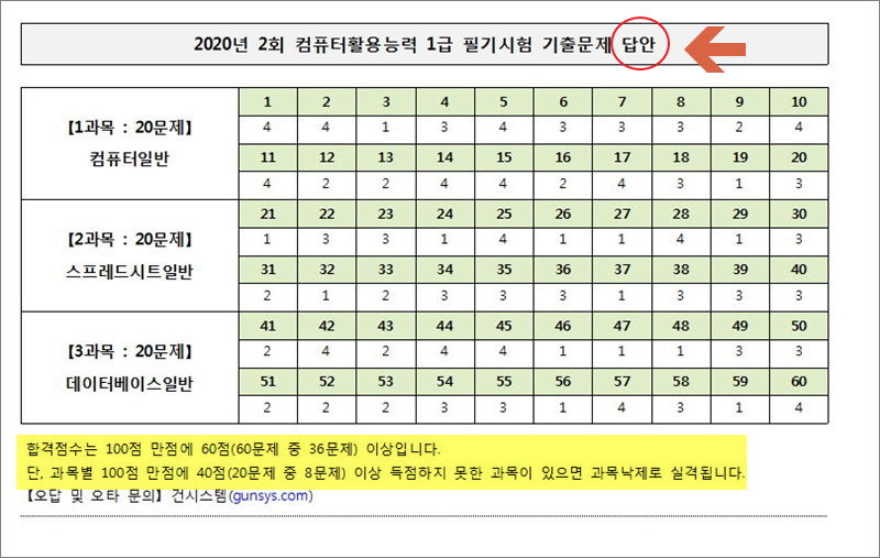 컴활1급 기출문제 필기 자료 다운 및 바로 풀기