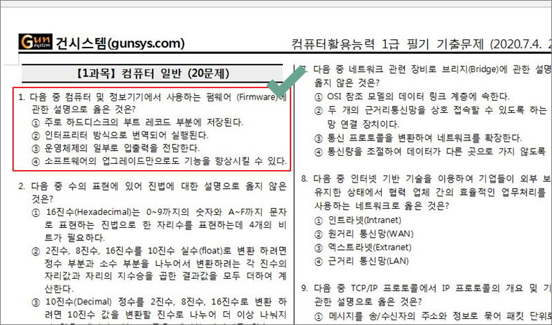 ▼ 온라인 상에서 기출문제를 푸는 경우에는 문서 파일을 다운 받지 않아도 됩니다. 화면에 나타난 문제를 읽어보고 그에 맞는 답을 선택하기만 하면 됩니다.