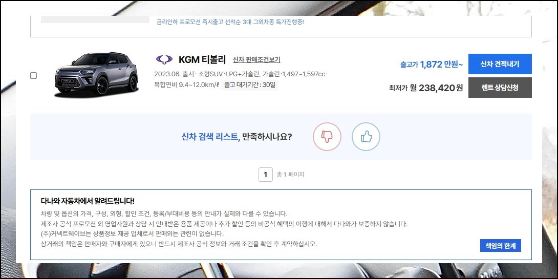 PC 하드웨어 견적 비교로 유명했던 다나와가 모빌리티 분야로 확장했어요. 쌍용자동차를 포함한 각 브랜드의 신차가격표를 한눈에 확인 가능한 공간이 되었습니다. 실구매가를 꼼꼼히 따져봐야 할 때 여기만 한 곳을 찾기 힘들어요.