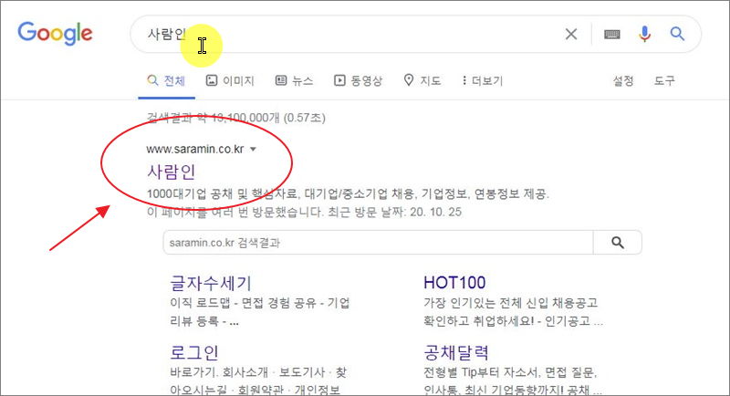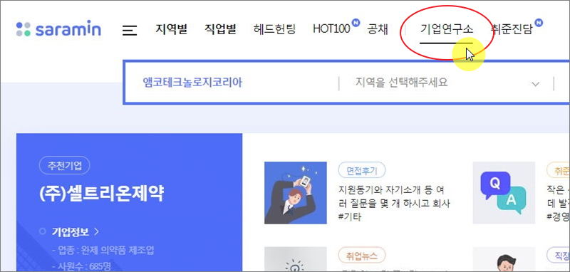 ▼ 사람인 사이트에서 "기업연구소" 메뉴를 클릭합니다.