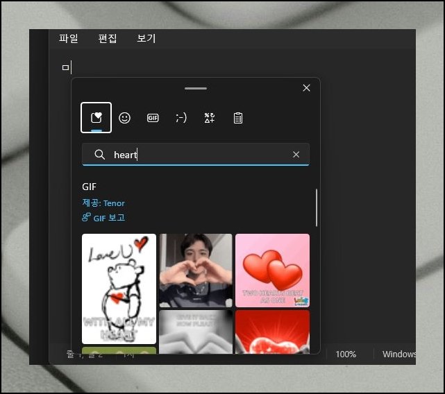 컴퓨터 자판으로는 못 치는 GIF 파일조차 검색 한 번으로 활용 가능해요. 이 편의 기능은 윈도우11 환경에서 지원됩니다. 동적인 이미지를 메시지에 넣으면 분위기가 한층 활기차져요. 정적인 글자 입력의 답답함을 벗어나 다채로운 표현이 가능해집니다.