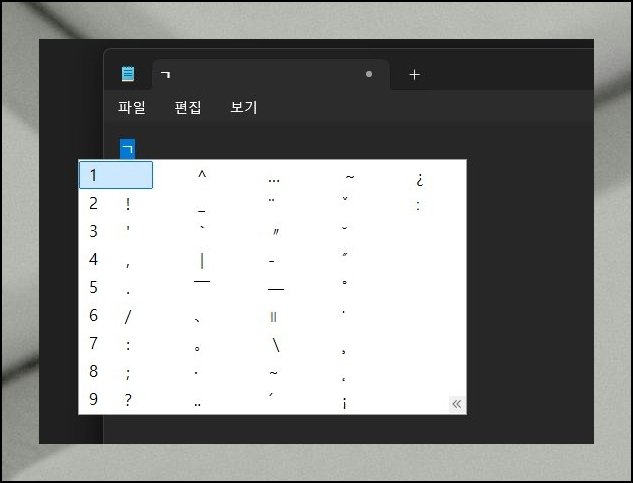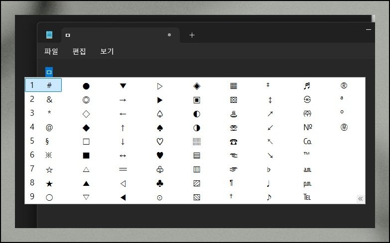 윈도우 메모장을 띄운 다음 자판의 "ㅁ"키를 입력하고 한자 버튼을 눌러봅니다. 작은 선택 박스가 컴퓨터 화면 한쪽에 나타나요. 방향키나 숫자키로 원하는 모양을 고른 뒤 엔터키만 치면 마무리됩니다. 미음키 하나만 알아두면 하트, 세모, 동그라미, 별 같은 도형을 자유자재로 활용할 수 있어요.