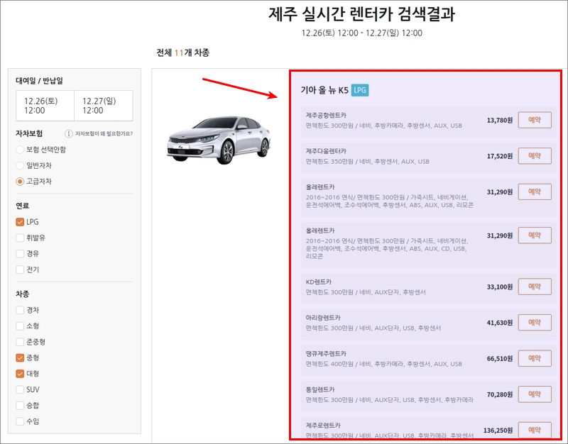 전기차 외에 LPG, 휘발유, 경유가 들어가는 렌트카도 검색해 보세요. 좀 더 높은 급의 차량을 저렴한 요금에 사용할 수 있어요. 이용할 수 있는 업체도 많은 편이고요.