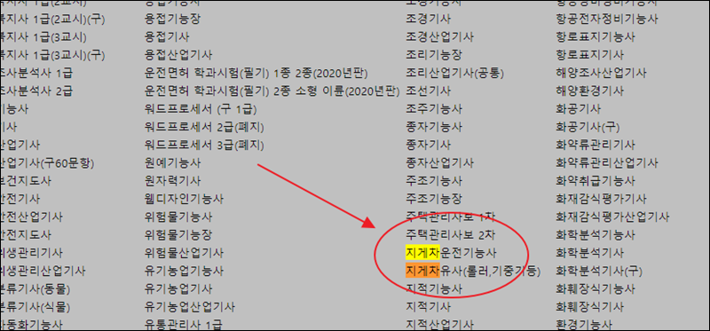 comcbt의 경우 당연히 무료로 필기 기출문제 자료를 얻을 수 있고, 회원가입을 할 필요도 없어요. 사이트에 접속하면 여러 가지 자격증 이름이 나타나는데요. 여기에서 "지게차운전기능사"를 찾아주세요.