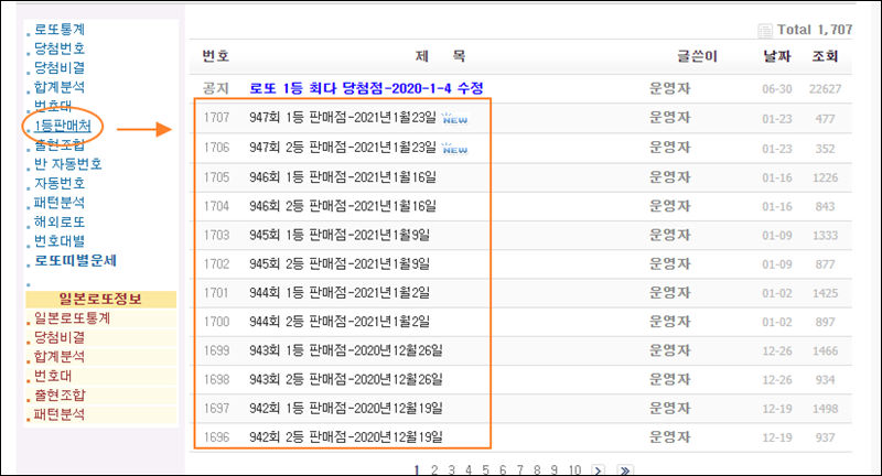 이곳에서는 로또 1등 당첨을 한 판매점에 대한 정보도 제공하고 있습니다. 1등 많이한 판매점을 찾아보고 싶을 때 활용하면 좋을 것 같습니다.