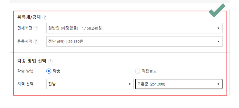 차량 구입 비용에는 취득세, 공채 비용, 탁송료도 포함이 돼요. 쌍용자동차를 구매할 때 얼마나 도는지 알아보고 싶은 분들에게 좋은 가격표 시스템인데요. 마지막으로 면세조건, 탁송지역, 등록지역에 대한 내용을 입력해 주세요.