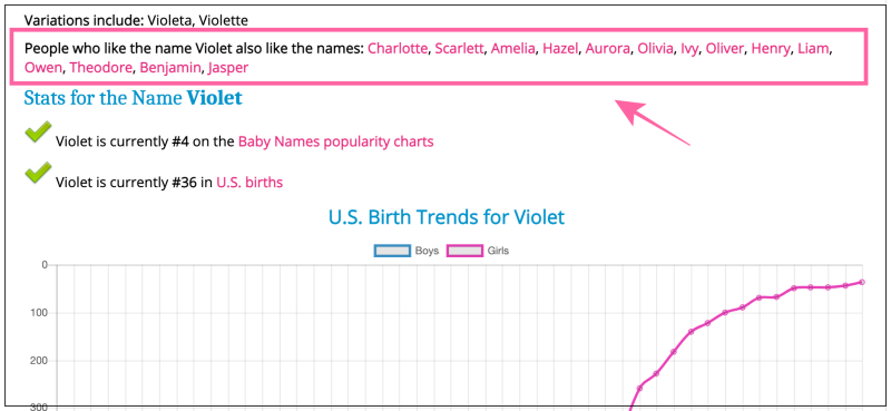 추가 정보에서 하단 부분을 보면 해당 이름을 선택한 사람들이 선호하는 이름들이 나타나는데요. 예쁜 이름을 선택했기 때문에 관련된 영어이름도 예쁜 축에 속해요.